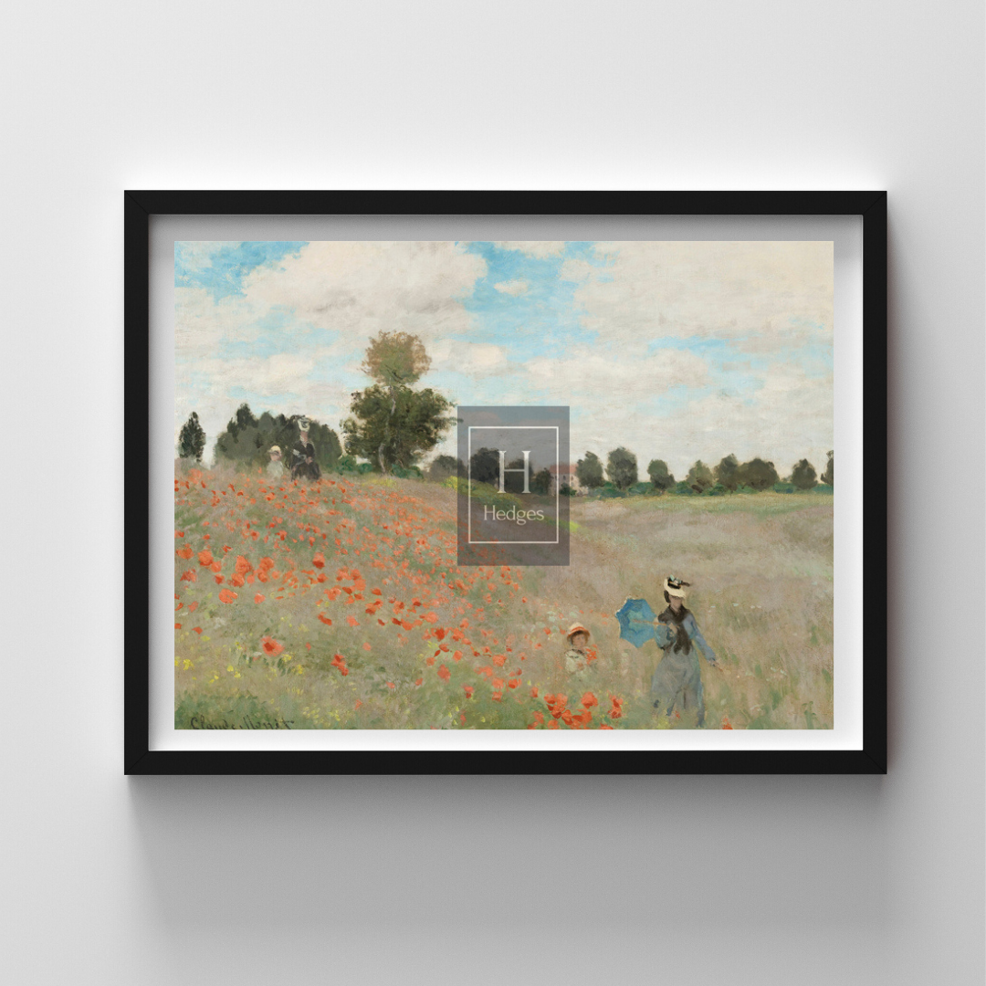 "The Poppy Field, Near Argenteuil," painted by Claude Monet in 1873, is a masterpiece of Impressionism. It captures the serene beauty of a poppy field in the suburban town of Argenteuil, near Paris. Monet's signature style shines through the dappled sunlight, vibrant poppies, and meticulous brushwork, reflecting his devotion to portraying the effects of light and atmosphere. This painting is a testament to Monet's enduring influence on the art world and his ability to encapsulate the ephemeral essence of nature in timeless art.