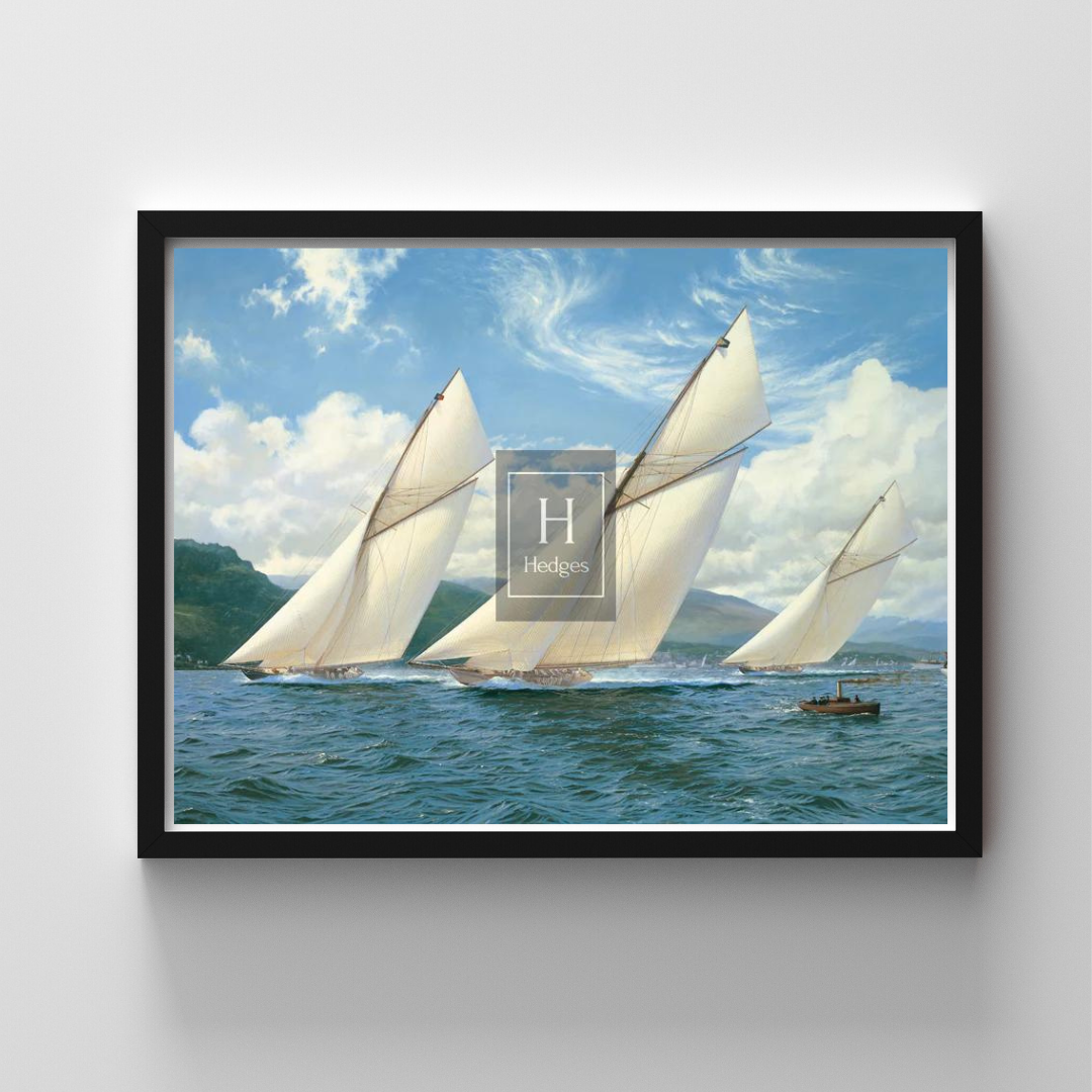 The artwork is balanced and dynamic, with the yachts positioned strategically to convey the excitement of the race
